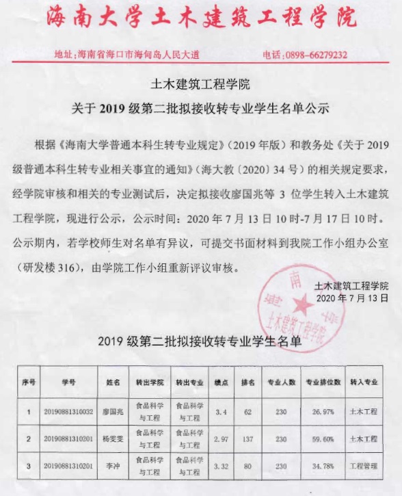 红足1世官网关于2019级第二批拟接收转专业学生名单公示.pdf
