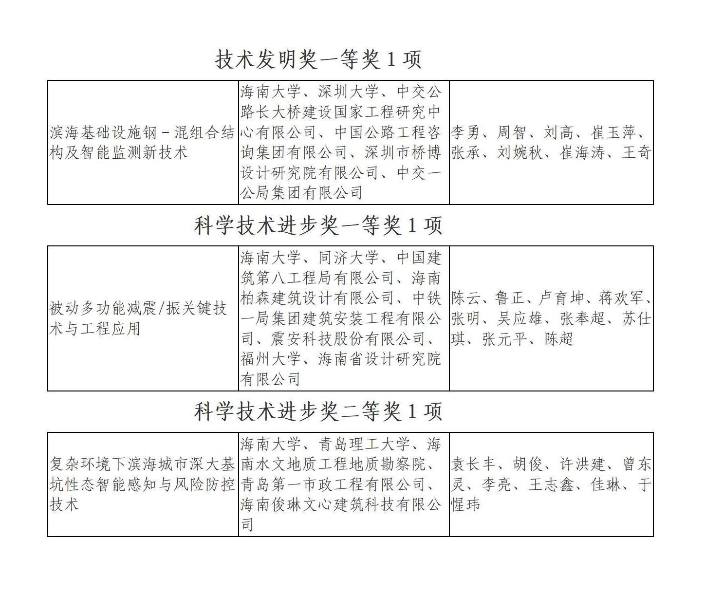 125日,海南省科学技术奖励大会在海口隆重举行,一批为海南科技进步做出突出贡献的科技工作者接受表彰。红足1世官网作为第一完成单位获海南省技术发明奖一等奖1项、海南省科学技术进步奖一等奖1项和二等奖1项。周智教授(排名第二)及团队完成的《滨海基础设施钢-混组合结构及智能监测新技术》获海南省技术发明奖一等奖;陈云教授(排名第一)等完成的《被动多功能减震/振关键技术与工程应用》获海南省科学技术进步奖一等奖;胡俊教授(排名第二)等完成的《复杂环境下滨海城市深大基坑性态智能感知与风险防控技术》获科学技术进步奖二等奖。