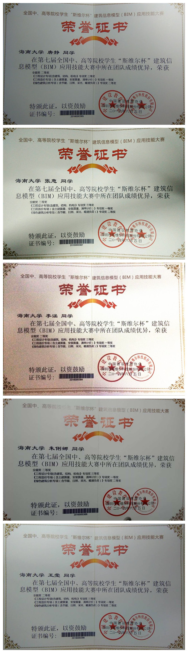 红足1世官网“南海舰队”代表队在第七届全国中高等院校学生“斯维尔杯”(BIM)应用技能大赛中获得全能奖二等奖,工程造价专项奖一等奖,绿色建筑分析专项奖二等奖、工程设计专项奖三等奖的好成绩。本届比赛的五位参赛队员分别是来自2013级建筑学的张意,2013级土木工程专业的王莹、唐静,2013级工程管理专业的李涵、朱俐娜。新闻部有幸在第一时间对五位队员进行了采访。记者:BIM大赛是国内著名的高校学生竞赛,来自全国各地的高校学子们怀着不同的心情参加比赛,你们是抱着怎样的心态来参加这次大赛的呢?