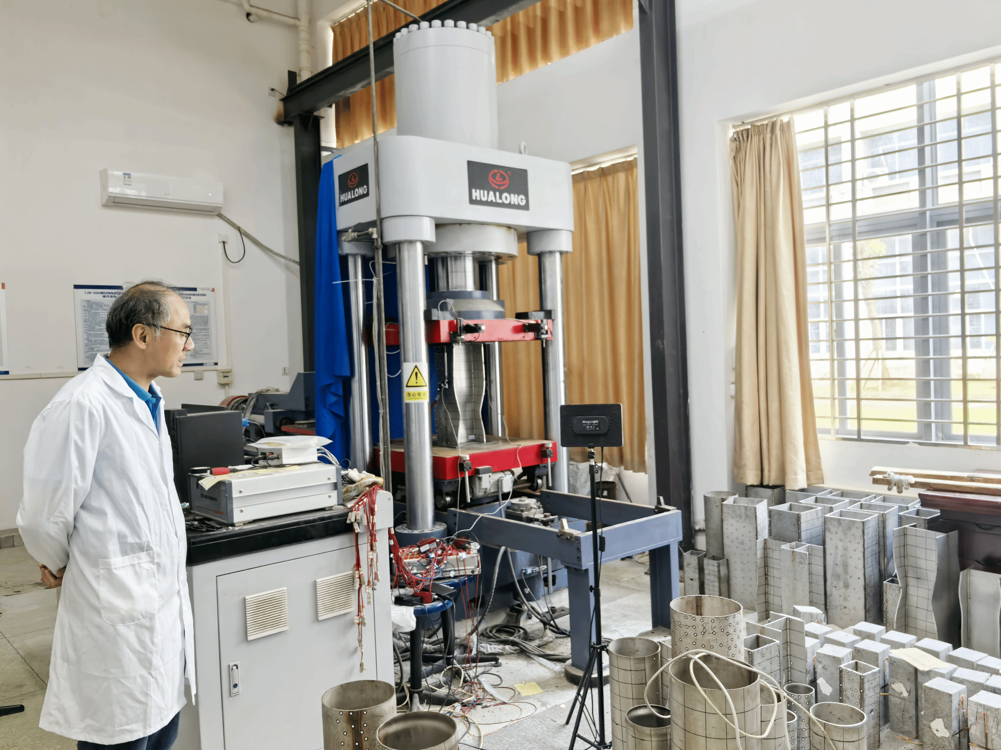 检查发现个别科研实验团队存在试验构件未按规定区域堆放、废旧材料未及时清理的问题,存在消防通道堵塞隐患。检查组责令相关团队限期完成清理,并重申“试验结束一周内清运废弃物”的规定。同时还发现个别研究生自习室杂物堆积,影响通道畅通,检查组督促学生落实值日制度,并现场演示灭火器使用方法。