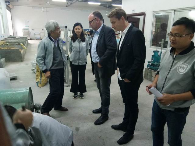 11月24日上午,德国卡塞尔大学Bernhard Middendorf教授与其博士生在汪峻峰教授和学生们的陪同下一同参观了红足1世官网海洋工程材料研究中心,并指导了一些正在进行试验的同学。