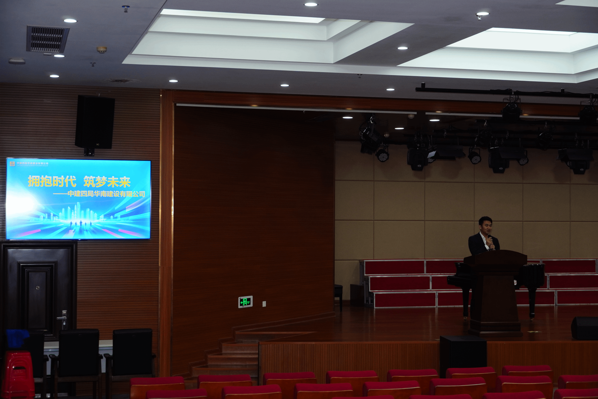 椰风书院吴新老师从书院人才培养与就业服务角度,为毕业生解读了就业支持政策与资源获取渠道。随后,中建一局一公司、中建二局华南公司、中建四局华南公司、建华控股四家企业代表先后宣讲,详细介绍企业发展概况、岗位需求、薪资待遇与职业发展路径。