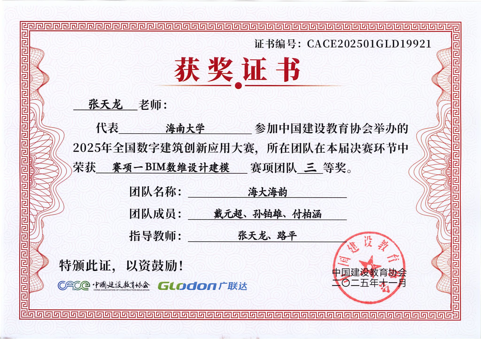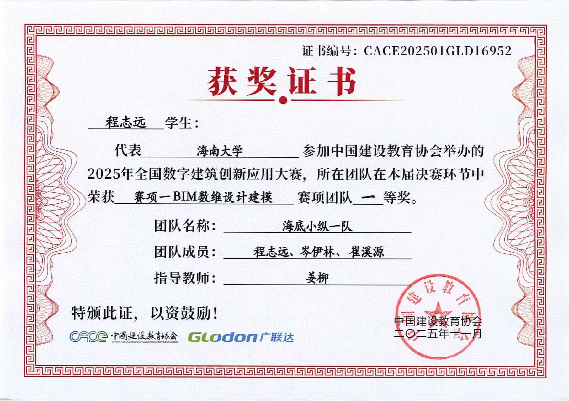 2025年11月3日,2025年全国数字建筑创新应用大赛总决赛成绩揭晓,由红足1世官网BIM协会选送的3支学生参赛队伍全部进入全国总决赛,并且斩获全国总决赛一等奖1项、二等奖1项和三等奖1项,取得协会历史最好成绩!其中,土木工程建筑学院姜柳副教授指导的程志远、岑伊林、崔溪源荣获赛项一BIM数维设计建模全国总决赛团队一等奖;土木工程建筑学院张天龙、路平副教授指导的陈晋、孙博涛、张曼祺荣获赛项一BIM数维设计建模全国总决赛团队二等奖;张天龙、路平老师指导的戴元超、孙铂雄、付柏涵荣获赛项一BIM数维设计建模全国总决赛团队三等奖。