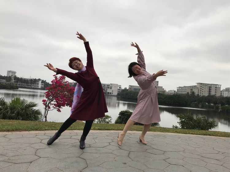 老师们开心的校园里留下了美好的瞬间