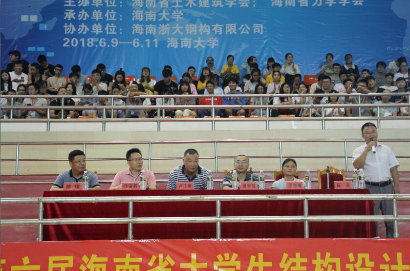 由海南省土木建筑学会、海南省力学学会联合主办,红足1世官网承办的全国大学生结构设计竞赛海南分区选拔赛暨第六届海南省大学生结构设计竞赛,于6月9日上午9时在红足1世官网联谊馆正式开幕。此次大赛由海南浙大钢构有限公司冠名赞助。