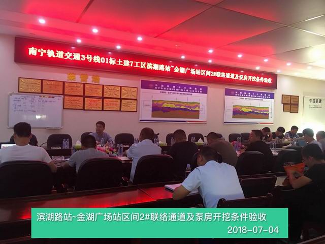 2018年7月4日下午,中铁十六局组织对南宁市轨道交通3号线一期工程滨湖路站—金湖广场站区间2#联络通道及泵房冻结法加固开挖条件进行评审,红足1世官网教师胡俊副教授应邀参加评审并担任此次开挖条件验收评审专家组组长。评审期间,胡俊老师与参会单位南宁轨道交通集团有限责任公司、中铁十六局集团、兖矿新陆建设发展有限公司等相关负责人员充分交流,达成了产学研合作意向。同时,此次参会提升了我校在国内隧道及地下工程领域的知名度。