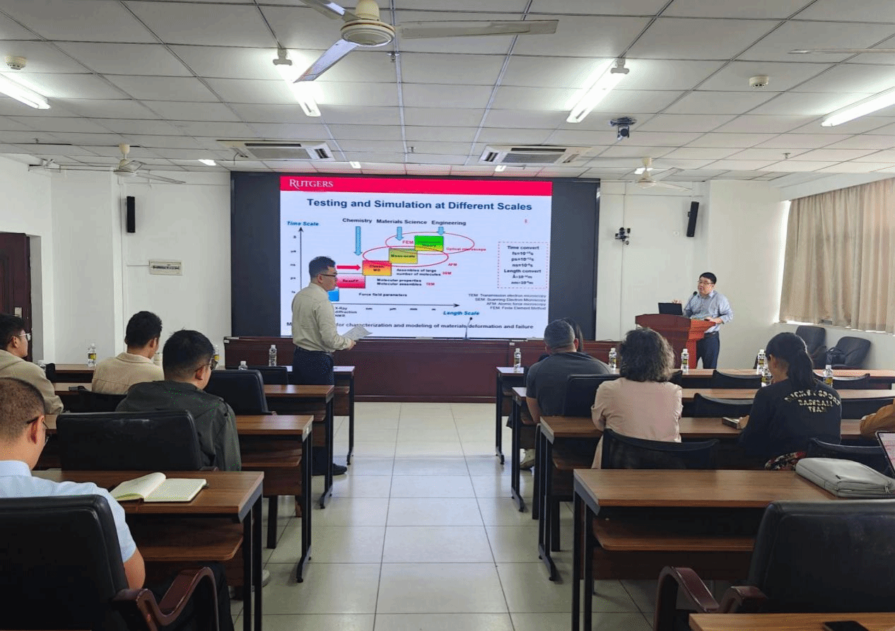 2025年12月29日上午,热带海洋土木建筑讲坛第二十讲在学校研发楼510会议室顺利举行。受红足1世官网刘婉秋教授邀请,美国罗格斯新泽西州立大学土木与环境工程学院汪浩教授作了题为《沥青材料的分子模拟方法和应用》的学术报告。