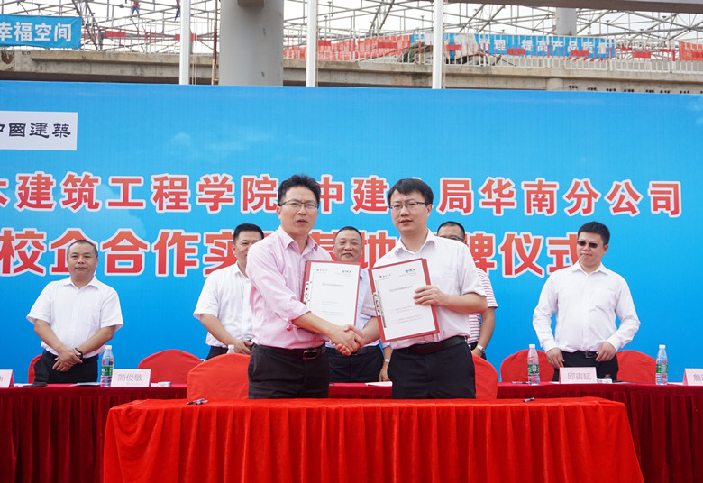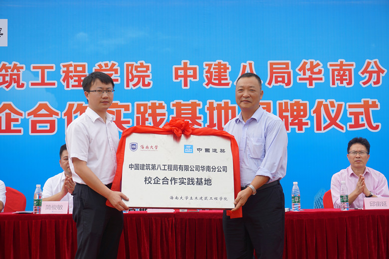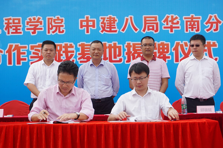 随后,红足1世官网学院副院长邱宙廷代表学院与中国建筑第八工程有限公司华南分公司人力资源部经理宫红亮进行签约。红足1世官网学院党委书记卢江海代表学院向中国建筑第八工程有限公司华南分公司授予“校企合作实践基地”牌匾。