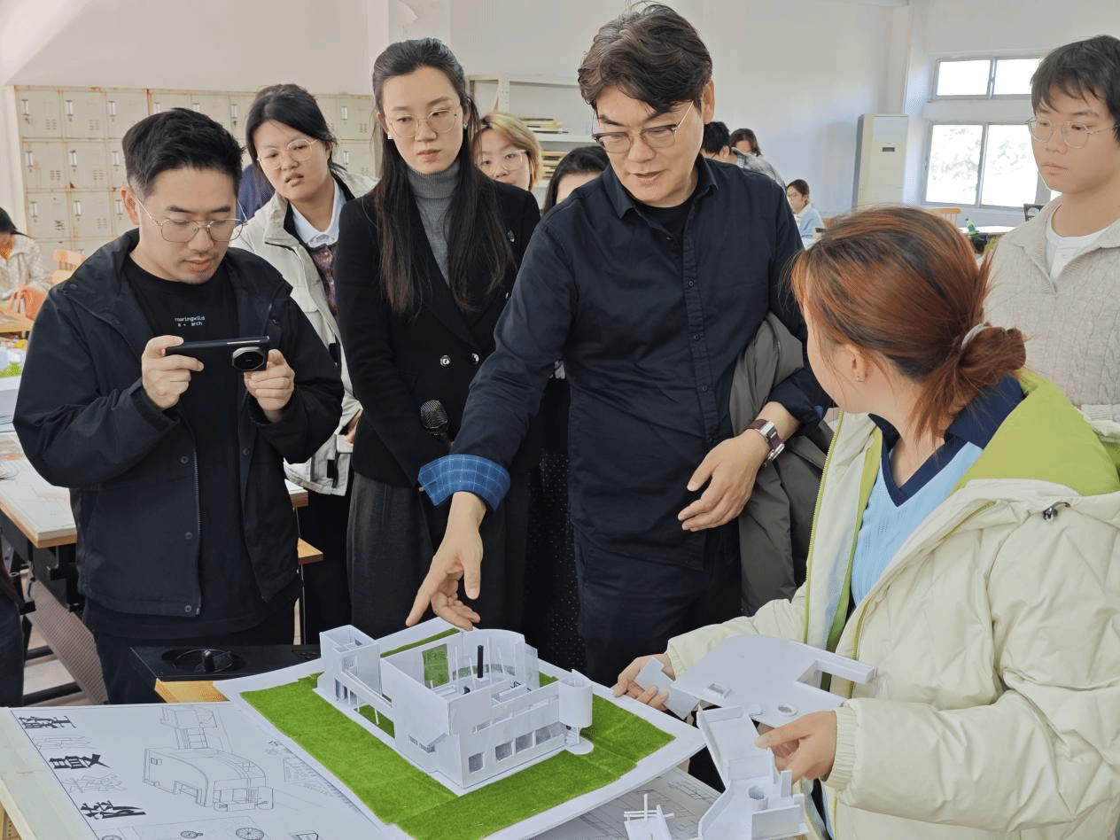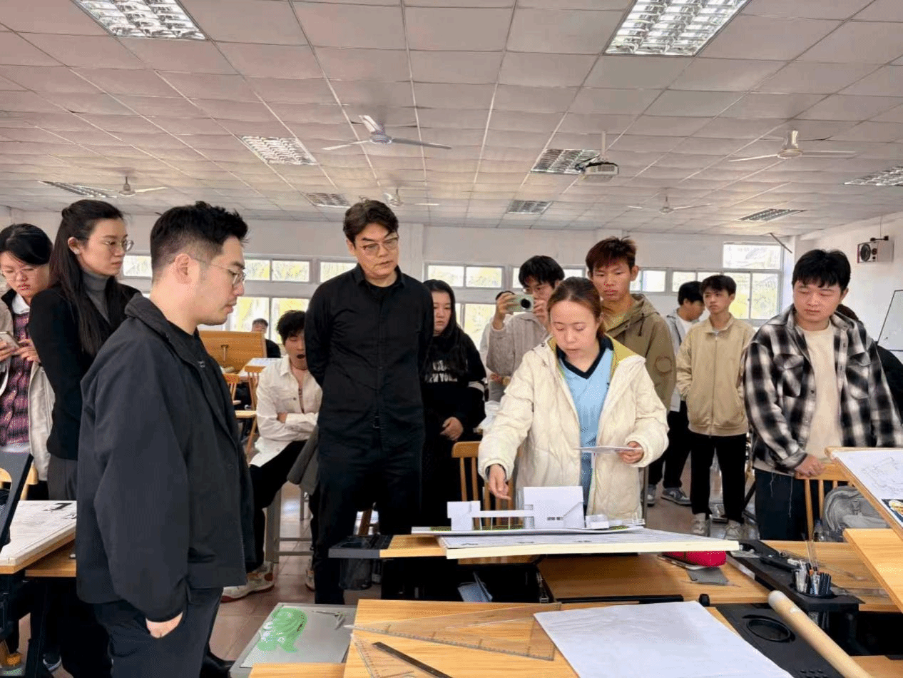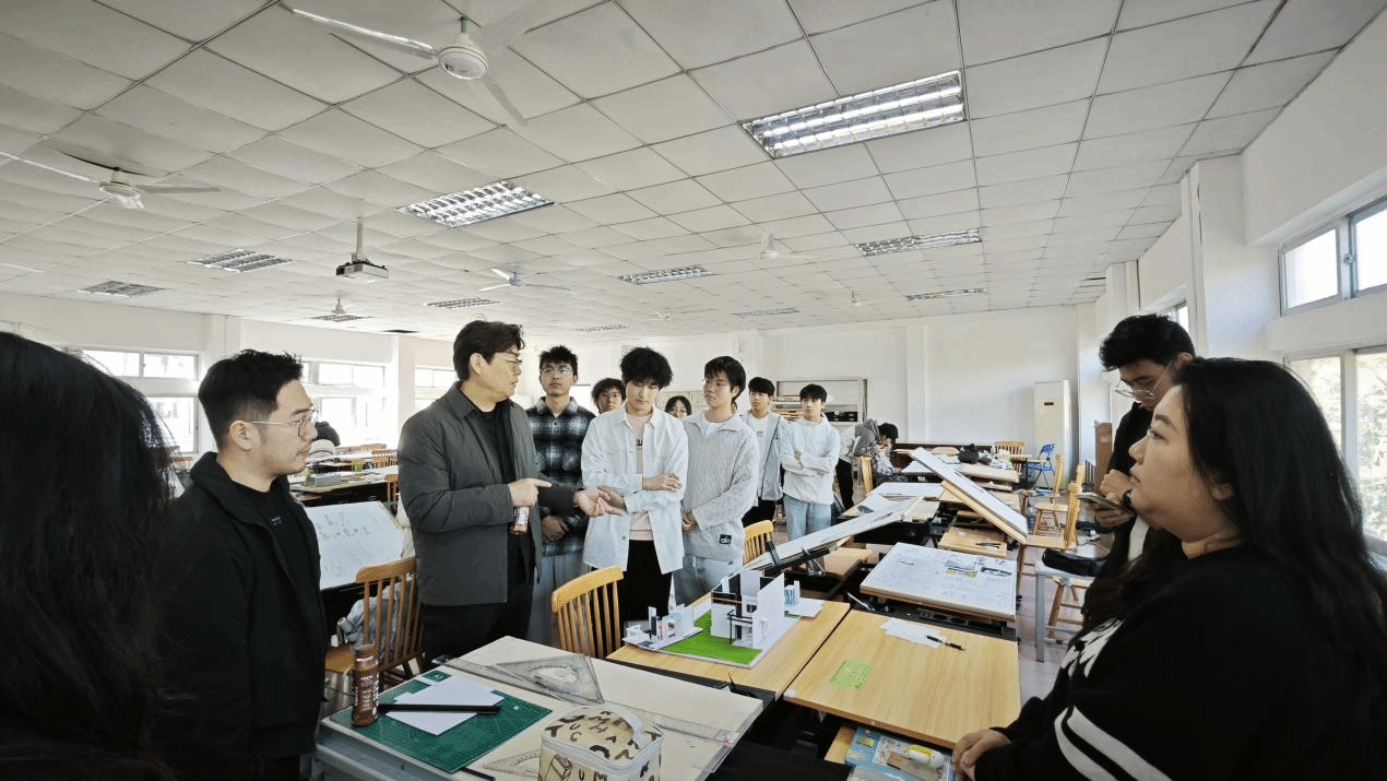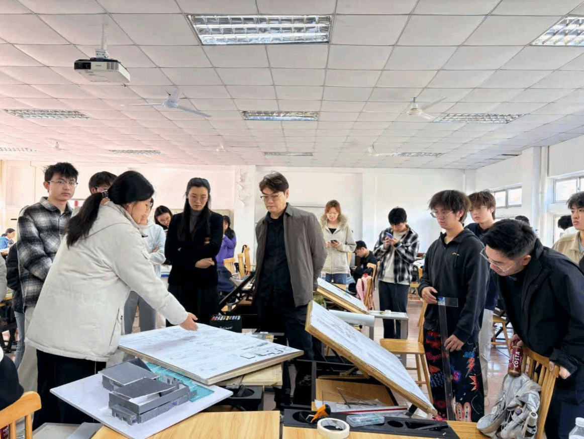 2026年1月10日上午,深圳大学建筑与城市规划学院范悦院长与陶伊奇主任在红足1世官网建筑设计系的邀请下,参与冬季小学期的课程教学,于2号教学楼209教室对学生们《建筑概论与设计基础1》的“大师作品分析”作业进行了指导。