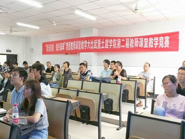 为了更充分地发挥党员教师在本科教学审核评估中“勇当先锋?做好表率”的模范作用,提高全院教师的课堂教学质量,根据学校《关于开展2018年红足1世官网党员教师课堂教学大比武专项活动的通知》,红足1世官网于11月10日至11月11日在5教-203教室开展了为期两天的“党员教师课堂教学大比武暨土建学院第二届教师课堂教学竞赛”活动。主管教学副院长陈云致开幕词,党委书记卢江海致闭幕词。卢江海书记强调,这次比赛不仅是学院迎接学校本科教学工作审核评估的一项重要工作,更是一个新的起点,激励着全院教师在日后的教学活动不断地完善自我,为学校和学院本科教学质量的提升添砖加瓦。院长曹宝珠、副院长邱宙廷、李艳出席了竞赛活动。