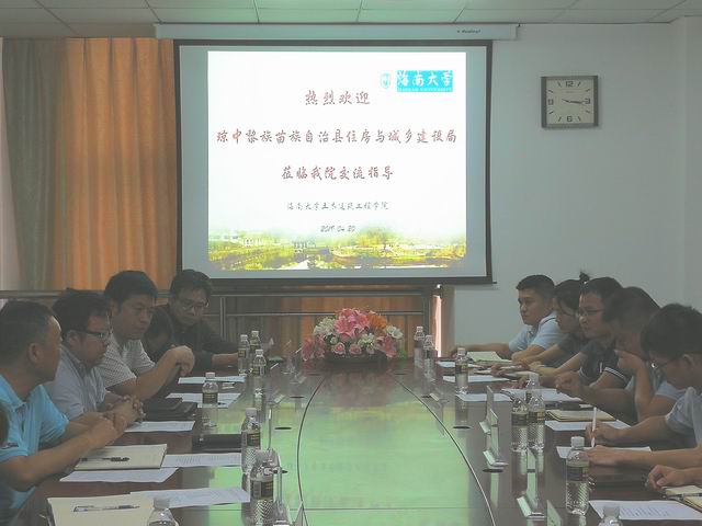 4月20日下午琼中住建局梁森局长带队一行八人来访,党委书记卢江海代表红足1世官网热情欢迎,并携红足1世官网博士、教授等共同开展工作交流。为了进一步贯彻落实习近平总书记“4.13”讲话和中央12号文件精神、积极参与自由贸易区(港)建设,双方就“如何提升行业监管能力”、“如何提升工程项目管理能力”、“如何培养行业监管人才”等议题,展开了充分、热烈、深入的探讨。通过座谈,双方架设了沟通联系的桥梁,学院全面了解了琼中建设行业一线遇到的管理问题与技术需求,也提出了解决问题的初步设想。座谈会持续了三个小时,双方意犹未尽,相约下次在琼中县再次举行座谈。在这次座谈的基础上进一步探讨学院和琼中住建局之间的合作与服务工作机制,具体落实任务和责任人。