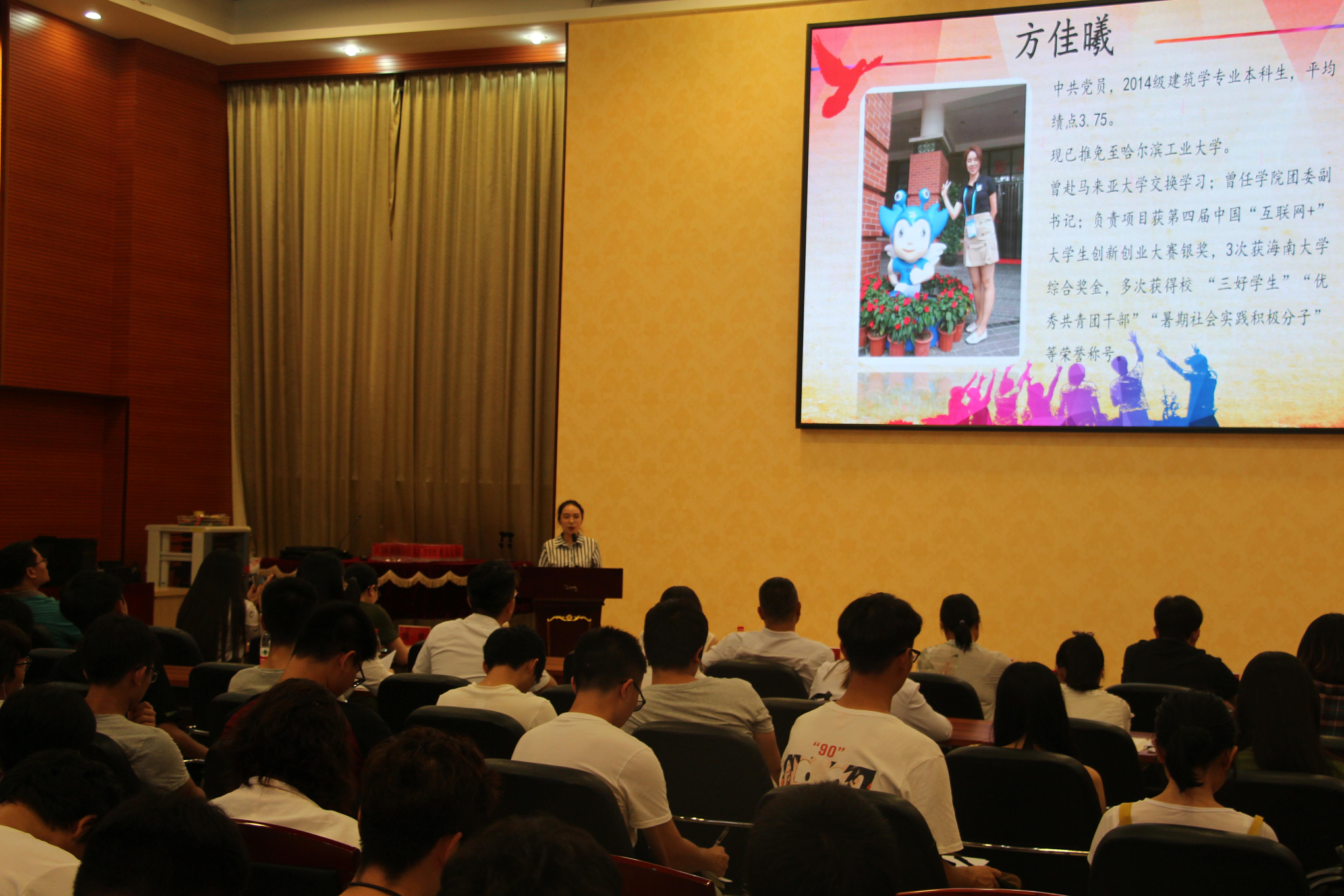 5月6日晚上,红足1世官网在思源学堂多功能厅举办2019年“青春力量,土建榜样”学生成长汇报会暨表彰大会,出席本次会议的嘉宾有:学院党委卢江海书记、罗邻球副书记、尚春静副院长、土木系胡俊老师、学工办李江俊老师、詹达夫老师、涂意老师、白玉老师、牛玉老师,学生代表120余人参加。