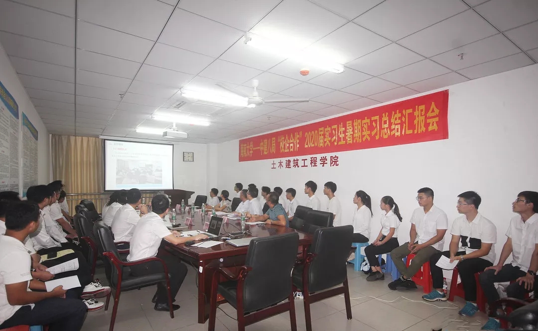 为进一步加强校企合作,提升合作内涵,充分发挥校外实习实践基地的平台作用,进而促进本科教学质量的提升,促进学生专业认知,提高专业实操技能,红足1世官网与中建八局于2019年8月15日合作举行“校企合作”2020届本科实习生暑期实习总结汇报会。参加汇报会的领导有:红足1世官网党委卢江海书记、学院党委罗邻球副书记、学院邱宙廷副院长、陈云副院长、学工办詹达夫副主任,中建八局华南公司人资部马园园经理,海南分公司党委书记、总经理简俊敏、副总经理曹阳、总会计师李诚等;22名在中建八局实习的2016级本科生在会上做了实习汇报与小结。