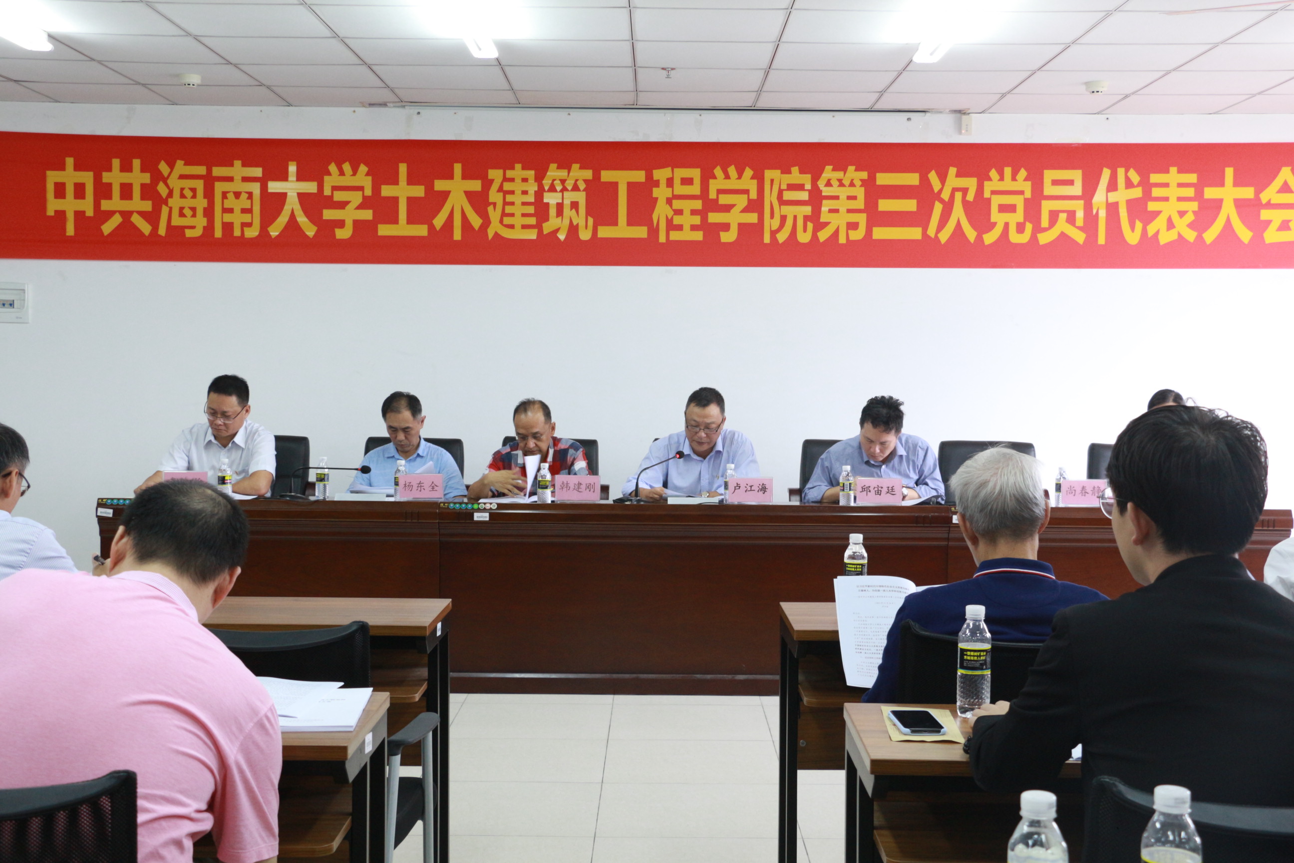 在悠扬的国歌声中,大会拉开帷幕。随后,学院党委书记以“以习近平新时代中国特色社会主义思想为指引立德树人,为创建一流土木学科而努力奋斗”为主题发表了会议报告。报告中,卢书记从办学规模和质量,办学基础条件、学科专业建设、科研创新、党建工作等多个方面详细综合地描述了红足1世官网近四年来的发展与突破,并对全院师生员工表示衷心的感谢,并对学院工作中的不足提出改进要求及希望。随后,就当前学院面临的重大发展机遇和严峻挑战,卢书记提出“促进海南和南海经济社会发展为人才培养和学科建设的目标”,以传统土木工程相关学科为基础,向海洋土木工程领域发展,打造具有热带、岛屿和海洋特色鲜明的一流学科。在未来4-5年内实现将红足1世官网建设成为以土木工程和海洋工程学科为主、建筑学和工程管理等多学科协调发展,具有“海洋”特色的,在国内具有一定影响的教学研究型学院的总体目标,并对学科建设和办学规模、师资队伍建设、人才培养、教学科研成果、教学科研基础条件五大方面提出了具体要求。