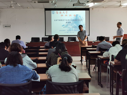 2019年11月21日(周四)上午9:00-11:30点,台湾屏东科技大学丁澈士教授受红足1世官网周智院长邀请,在红足1世官网510会议室做《全球气候变迁下台湾水利资源开发利用新思维》学术报告。报告会由红足1世官网张友良副院长主持,院领导卢江海书记和邱宙廷副院长出席、研究生、有兴趣的本科生和与学术报告相关的专任教师共计50余人参加了此次学术报告会。