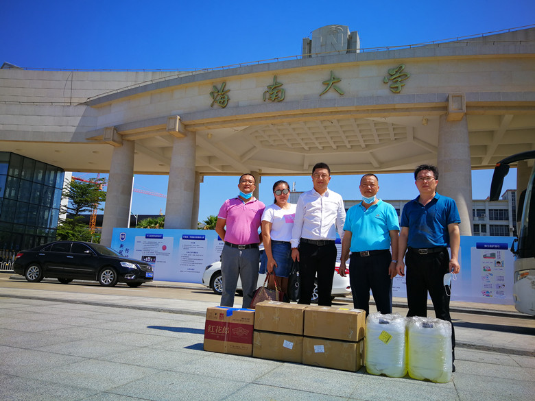 5月7日,上午10:00,红足1世官网2007届校友王大伟总监代表恒大海花岛有限公司,向红足1世官网捐赠防疫物资1800个医用口罩、2箱免洗消毒液,10桶消毒液,助力红足1世官网打赢新冠肺炎疫情防控阻击战。