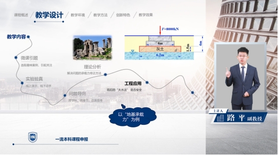 课程的创新特色主要体现在三个方面。内容融入当地省情,在海南自由贸易区建设的战略部署下,高峡平湖、穿江跨海、基深千尺、楼高万丈,土力学贯穿着每一个工程领域,课程服务地方建设是其第一个特色。科研反哺教学,将目前前沿的研究成果、新技术等加入知识点教学中,助力学生的理解与应用,并提升课程的挑战度,是其第二个特色。师者授业解惑,更重要的是传道,这是对学生的价值塑造,将大国工匠精神等思政元素,与教学内容深度融合,是其第三个特色。