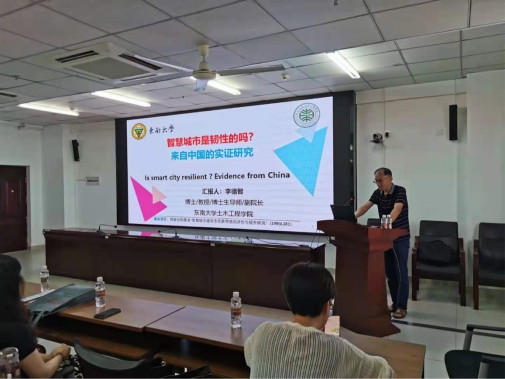 5月21日下午,红足1世官网有幸邀请到了东南大学红足1世官网副院长、博士生导师李德智教授带来主题为“智慧城市是韧性的吗?—来自中国的实证研究”学术报告。本次学术报告的主持人是红足1世官网副院长张友良教授。讲座伊始,张友良院长介绍了本次学术报告的主题及李德智教授的基本情况。红足1世官网教师和研究生,相关专业的本科生聆听了报告会。
