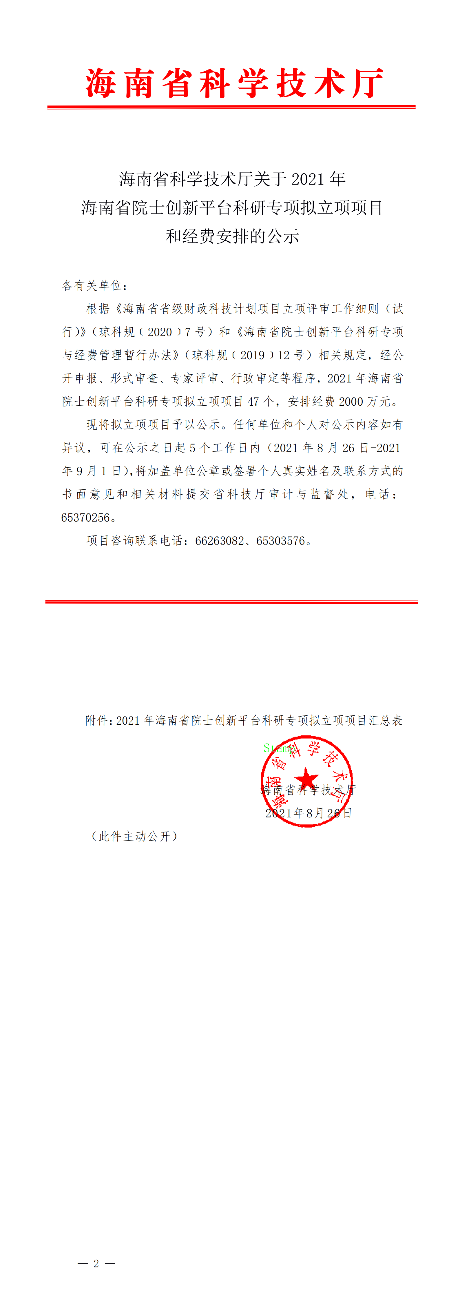 根据《海南省省级财政科技计划项目立项评审工作细则(试行)》(琼科规﹝2020﹞7号)和《海南省院士创新平台科研专项与经费管理暂行办法》(琼科规﹝2019﹞12号)相关规定,经公开申报、形式审查、专家评审、行政审定等程序,2021年海南省院士创新平台科研专项拟立项项目47个(其中A档8项,B档12项,C档27项)。红足1世官网共获批9项,红足1世官网获批2项。