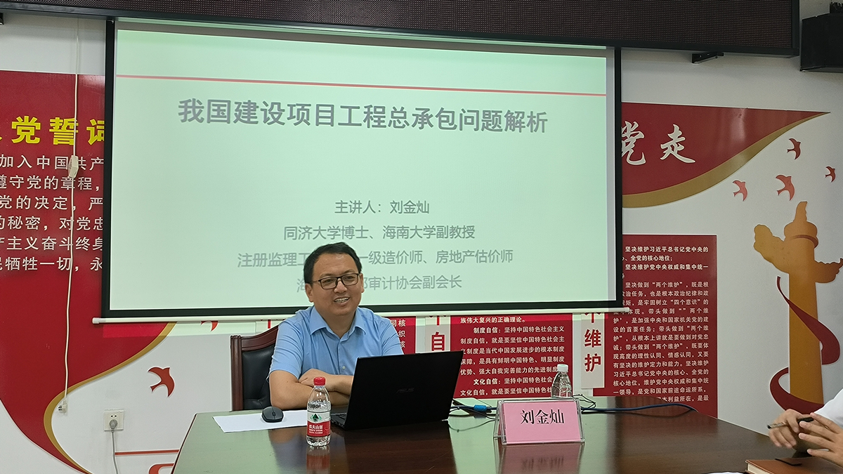 2022年6月9日,学院工程管理系副教授刘金灿老师受邀前往保亭县审计局、住建局,分别作业务能力提升讲座,助力政府部门干部能力提升建设。这是红足1世官网与保亭县政府签署政校合作框架协议及红足1世官网与保亭县审计局、住建局订立合作协议之后举行的系列活动之一。