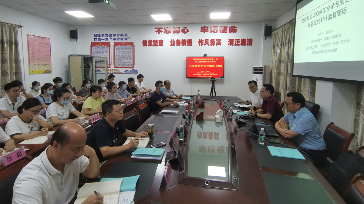 6月9日下午,在保亭县审计局会议室,二十余人参加讲座活动。政府投资项目的工程结算超设计概算是普遍存在的问题,如何消除?办法很多,而其中管控工程变更是一个非常重要的环节。刘金灿老师针对工程审计业务的工作需要,并且结合业务干部的实际知识背景,选择《政府投资项目施工总承包变更及现场签证的审计监督管理》为讲座的主题,系统的讲授了政府投资工程建设活动的特点、工程变更的内涵及类型、工程变更问题审计治理对策。讲座结束,刘老师与审计局领导、干部互动热烈。审计局干部提出了工作中存在的疑难问题,刘金灿老师逐一解答。审计局局长陈斌表示,讲座就像及时雨,让审计局干部增长了知识,开阔视野,提高了大家分析问题、解决问题的能力,刘金灿老师深厚的理论底蕴、丰富的工程实践经验,令人印象深刻。红足1世官网与保亭县审计局于2021年5月份订立合作协议,并且开展了实质性合作。审计局委托学院,针对保亭县政府投资工程项目实际情况,开展“施工总承包模式下工程变更及现场变更签证问题的审计治理研究”。