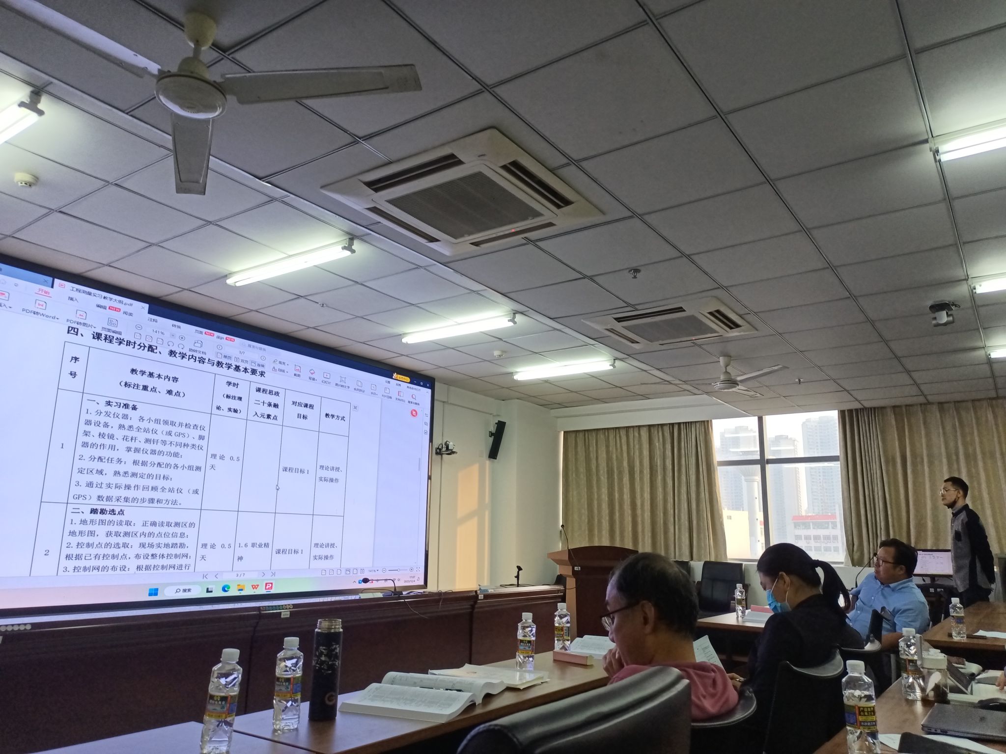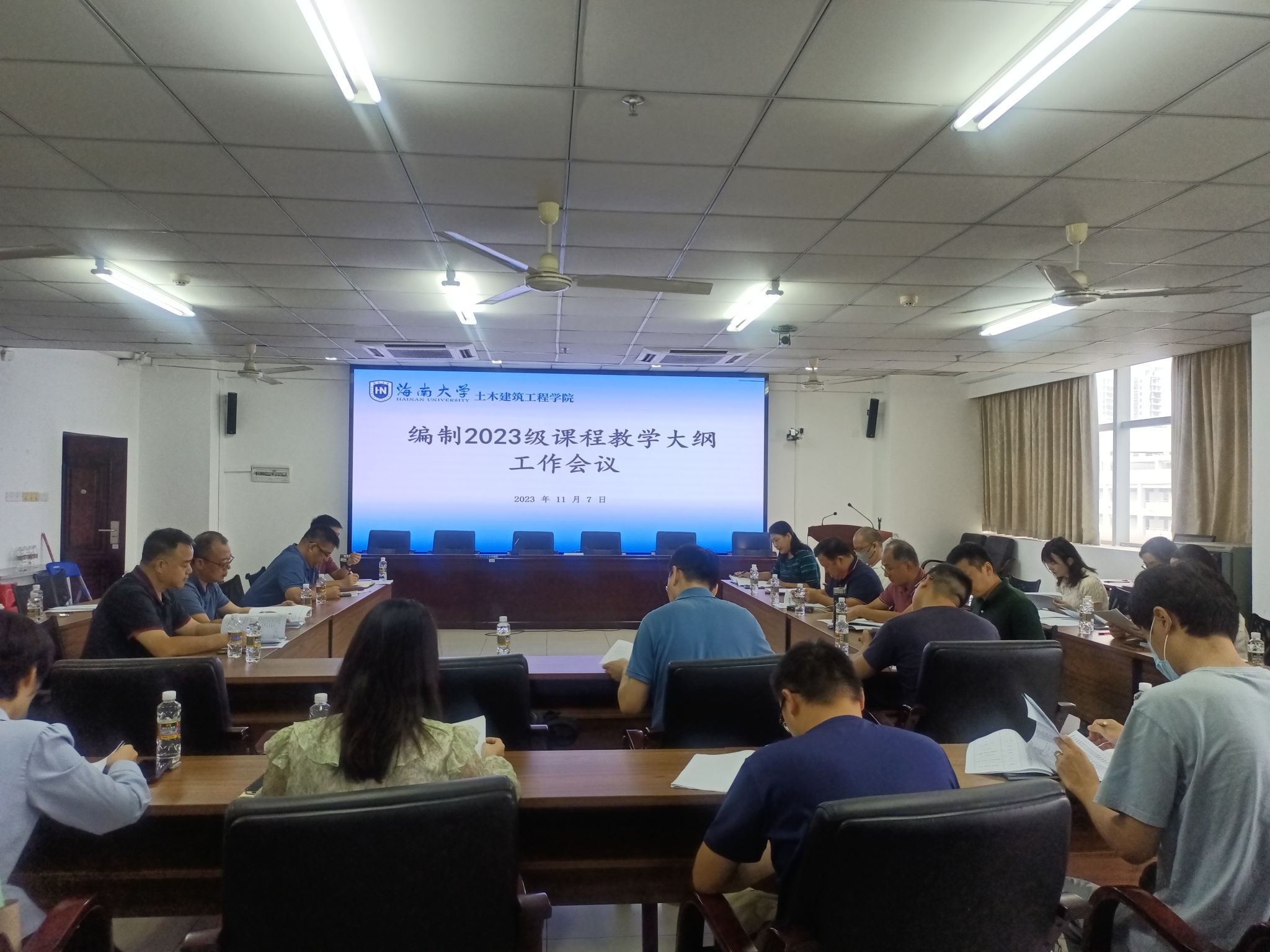 接下来由工作领导小组组长、副组长主持,召开了编制教学大纲讨论会。学院领导班子、各系系(副)主任、学院督导、相关的老师都参加。全体教师以课程组为单位,对每一门课的教学大纲逐一进行汇报。院长周智教授既是工作领导小组组长,又是土木工程专业责任教授。他带领大家对每一门课程进行详细梳理。他指出,学科很重要,要求全体教师先上好课,再做科研。教学和科研是教师工作的生命线,教学大纲是教学的生命线,教学大纲必须保质保量。
