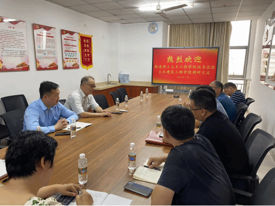 南通理工学院土木工程学院刘院长对学院的热情接待表示感谢,他简要介绍了南通理工学院和土木工程学院的基本情况,并说明了本次调研交流的主要目的,期待双方加强沟通交流,希望在人才联合培养、申报校外导师等方面开展合作。