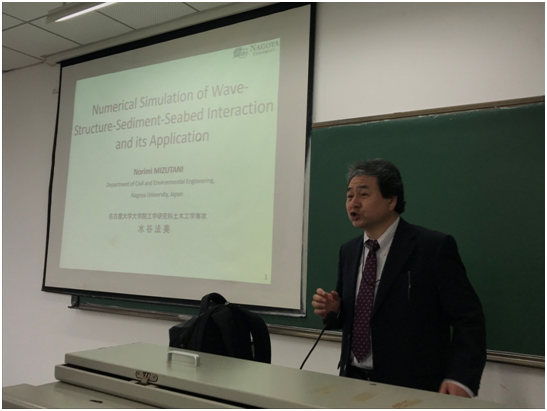 2017-2018学年冬季小学期,海洋工程与技术系邀请了日本名古屋大学工学研究科科长水谷法美教授来华访问。水谷教授以“Numerical simulation of wave-structure-sediment-seabed interactions and its application”为题,于2018年1月16日上午8:30在5-204教室进行了一次学术讲座,讲座由海洋工程与技术系教师任兴月主持,海洋工程与技术系全体教师及2015、2016级学术均参与了本次学术活动。讲座的过程中,水谷教授还为学生介绍了日本留学政策和名古屋大学申请方案,并针对我国CSC奖学金、日本文部省奖学金及名古屋大学校级奖学金的申请过程做了详尽的介绍。讲座提问环节,学生与水谷教授有问有答,气氛活跃。