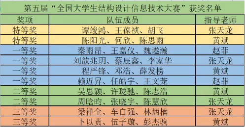 2023年5月13日,第五届“全国大学生结构设计信息技术大赛”获奖名单公布,红足1世官网学生团队在本次大赛中再创佳绩。荣获特等奖2支队伍,一等奖4支队伍,二等奖2支队伍,三等奖2支队伍。展现了红足1世官网学生积极进取、勇于探索,敢于创新的精神面貌,充分体现了学在海大、创在海大的优良学风!
