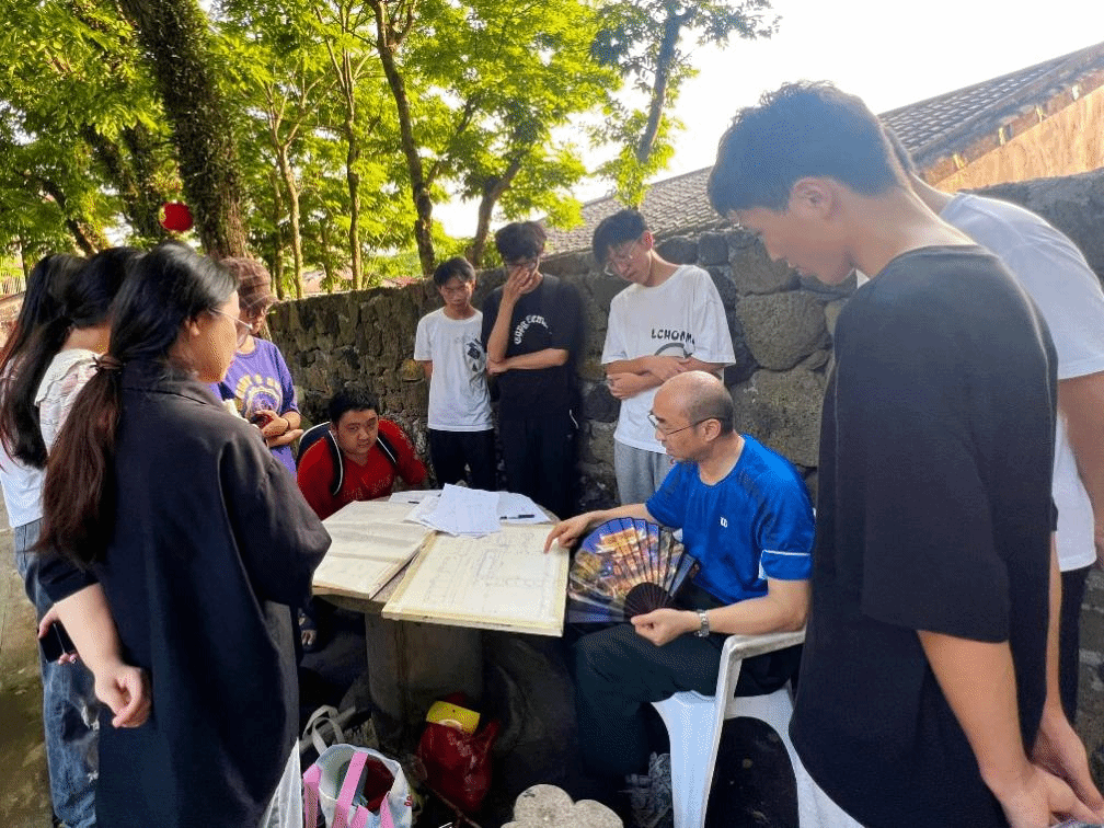 在各位教师的指导下,学生们利用测距仪、卷尺等工具准确获取建筑物的位置、尺寸等信息,并对其进行详细的测量和记录,不仅绘制出了建筑的平面图、立面图、剖面图、细部详图,还对建筑结构、材料、环境状况等进行了全面分析,旨在为美社村未来的规划和建设发展提供有价值的参考和数据支持。