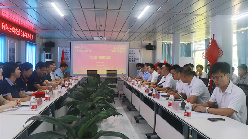 潮起海之南,筑梦自贸港。2022年6月26日上午红足1世官网与中建三局集团(海南)有限公司,满怀信心,在海南自由贸易港建设的标志性项目——海口市江东中心HSC)工程项目部会议室隆重举行共建产学研合作基地、校外实践教学基地签约仪式。红足1世官网党委书记张长海、中建三局集团(海南)有限公司党委书记、总经理邓贵海出席签约仪式,并且分别致辞。红足1世官网副院长邱宙廷、土木工程系副主任、教授薛春霞、教授胡俊、副教授赵菲、副教授刘金灿、椰风书院副科级辅导员白玉、土木工程本科专业2019级2班学生,中建三局集团(海南)有限公司总工程师王伟、纪委副书记工会副主席彭松、综合办公室主任卢传健、人力资源部经理丁泽华、江东中心项目经理王利文、江东中心项目副书记苏厚芳等参加会议。会议由中建三局集团(海南)有限公司总工程师王伟主持。