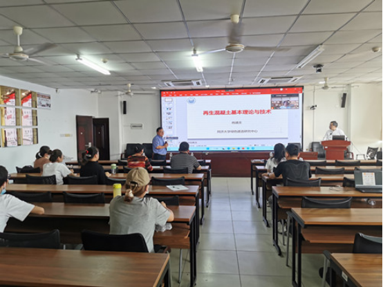 肖建庄教授的报告分别从混凝土再生原则与方法、再生混凝土制备理论、再生混凝土的创新发展、再生混凝土的应用准则、再生混凝土的专委会十年回顾几方面进行了介绍,并分享他们团队在建筑工程行业方面所取得的科研成果及应用他建议我们在今后设计建筑工程时,一定要从安全性、经济性、低碳性三方面考虑。报告结束后,肖建庄教授就师生感兴趣的问题进行了解答。