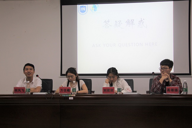 大会开始,各位保研成功的学长和学姐从自身经历出发,详细讲解了自己的保研准备工作以及保研流程﹑注意事项等,并向同学提出一些实用的建议,如怎么制作一份漂亮的简历﹑参加夏令营时密切关注学校的动态等。四名学长学姐从不同专业,不同方向详细讲解了保研过程。接着,学长学姐就同学的详细问题进行了答疑解惑。大会最后,学长学姐留下了各自的联系方式,以方便同学们在大会结束之后可以继续了解保研的相关信息。