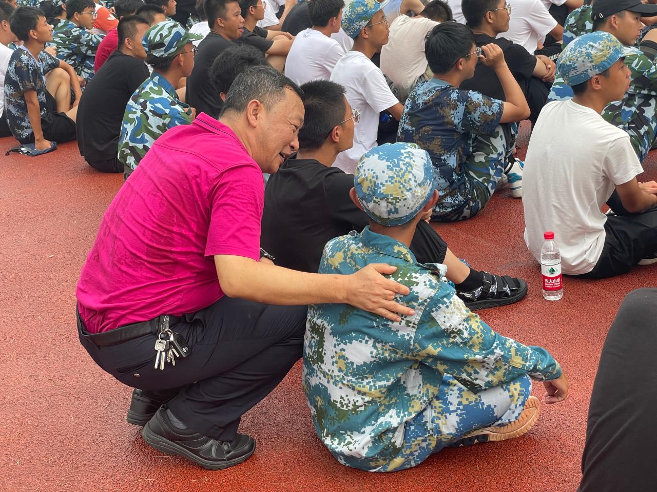 随后,卢江海书记也对教官们的辛苦付出表示感谢,对同学们在军训场上的表现给予赞扬,寄语他们要发扬“土木人”不怕累、不怕苦的精神,以更加饱满的精神面貌投入到接下来的训练中。总结完后,卢书记还不忘到各分队了解贫困生情况,特别关注云南地区的民族学生,并与他们进行了亲切交流。