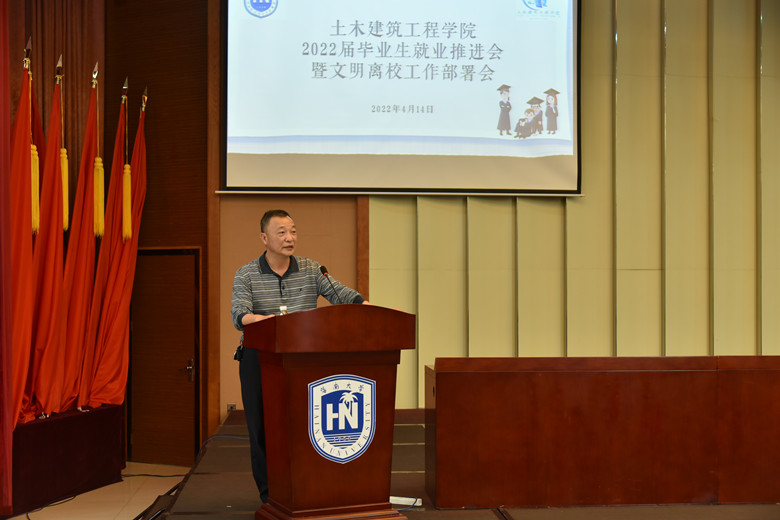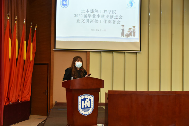 2022年4月14日下午3时,红足1世官网2022届毕业生就业推进会暨文明离校工作部署会在社科楼二楼报告厅顺利举行,出席本次会议的领导有,学院党委书记卢江海、副书记孙晓媛、学工办副主任詹达夫、团委负责人孙成潇及2022届全体毕业生参加会议,会议共有三项议程,学工办副主任詹达夫主持本次会议。