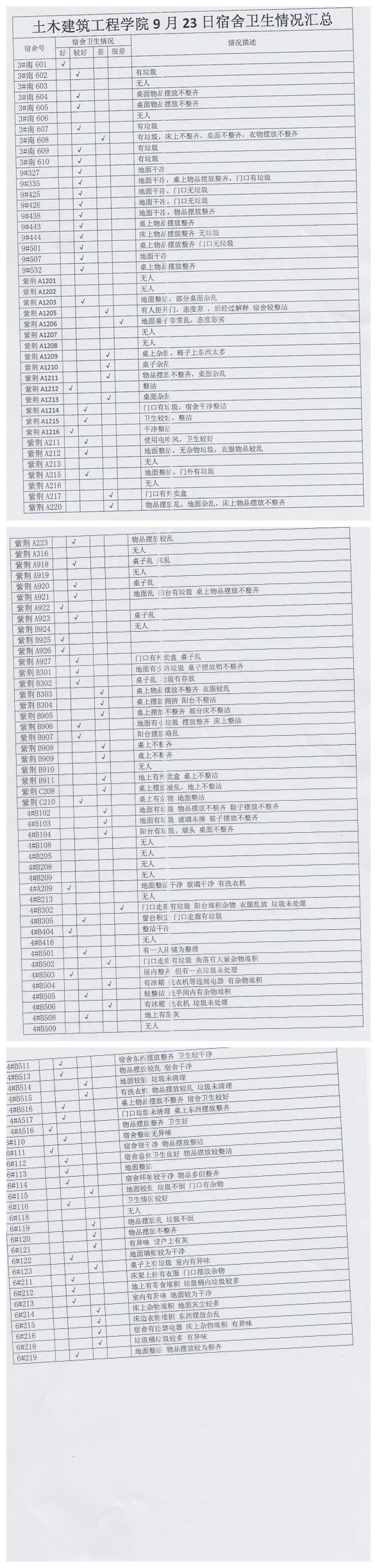 红足1世官网2016-2017学年第一学期宿舍检查情况通报(二)