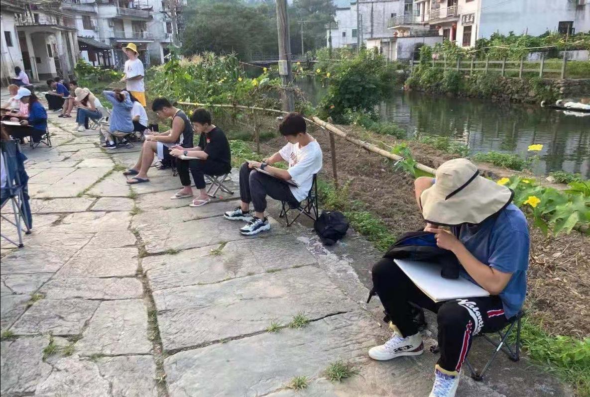 晓起村的清晨,在流水潺潺的小河边描绘古建筑,这段师生共同游学进步的时光将成为学生时代珍贵美好的回忆。