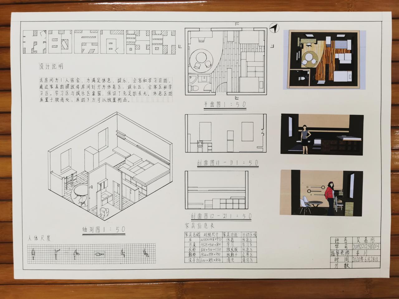 4、室内家具、陈设的样式可自由选择或设计,只要求外形轮廓,无需进行细部设计,但其尺寸大小应符合人体尺度要求。