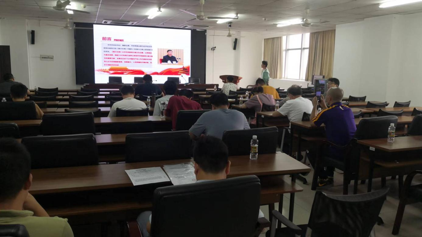 会议第一项,由董金爽老师带领大学共同学习《复兴文库》序言精神,采用播放新闻视频和PPT的形式进行集中学习。